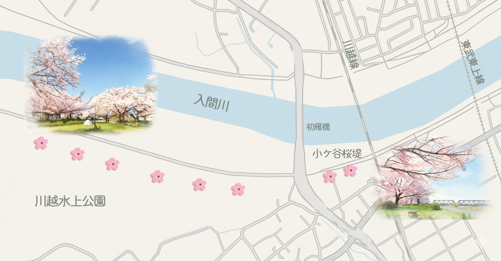 ●川越水上公園の桜並木、MAP