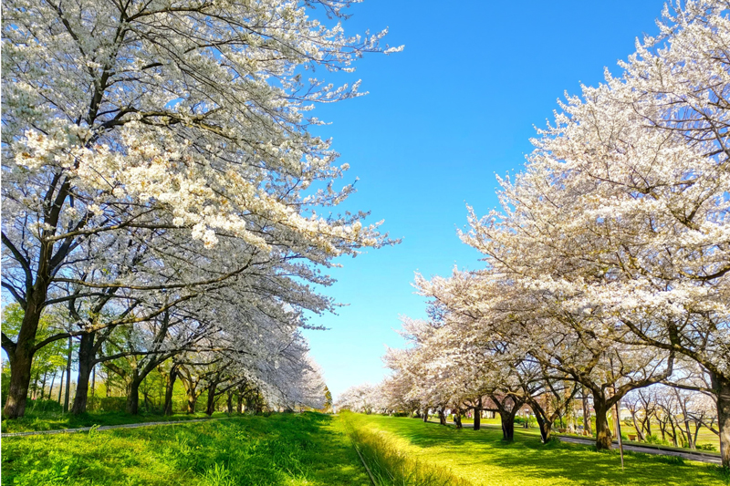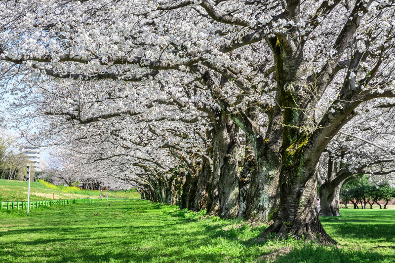 約1〜1.5kmにわたり約300本、ほぼ直線的な桜並木で、奥行きや抜け感のある撮影に適している。園内には池、芝生など多彩な表現要素があり、バリエーション豊かなポトレが楽しめる。