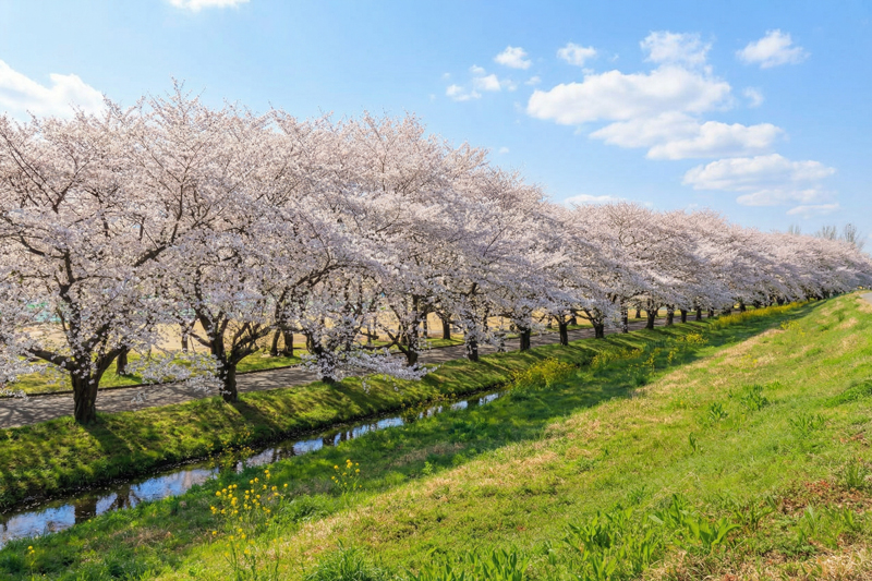 ●Aエリア:川越氷川神社の裏手、新河岸川の土手沿いの桜並木
