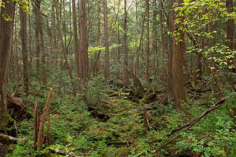 貞観大噴火(864年)で流れ出た溶岩流の上に形成された、生命力溢れる樹海。
